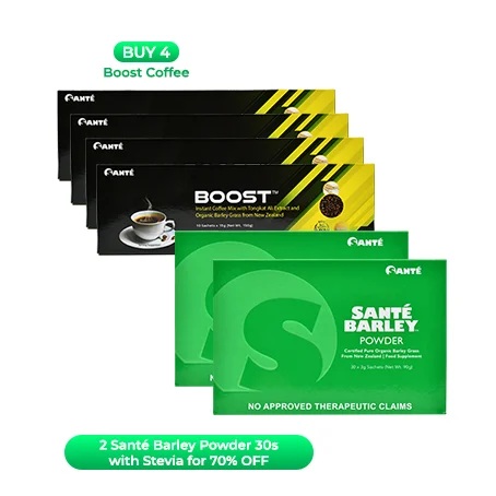 BUY 4 BOOST COFFEE GET 2 SB 30s W/ STEVIA AT 70% OFF
